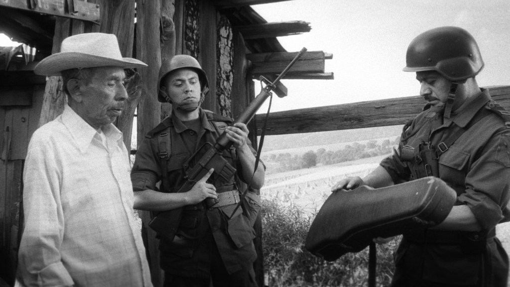 “The Violin [Adult],” is a story about Don Plutarco, his son Genaro and his grandson Lucio who live a double life: on one hand they are musicians and humble farmers, on the other they support the campesina peasant guerilla movement's armed efforts against the oppressive government. When the military seizes the village, the rebels flee to the sierra hills, forced to leave behind their stock of ammunition. While the guerillas organize a counter-attack, old Plutarco executes his own plan. He plays up his appearance as a harmless violin player, in order to get into the village and recover the ammunition hidden in his corn field. His violin playing charms the army captain, who orders Plutarco to come back daily. Arms and music play a tenuous game of cat-and-mouse which ultimately results in painful betrayal.