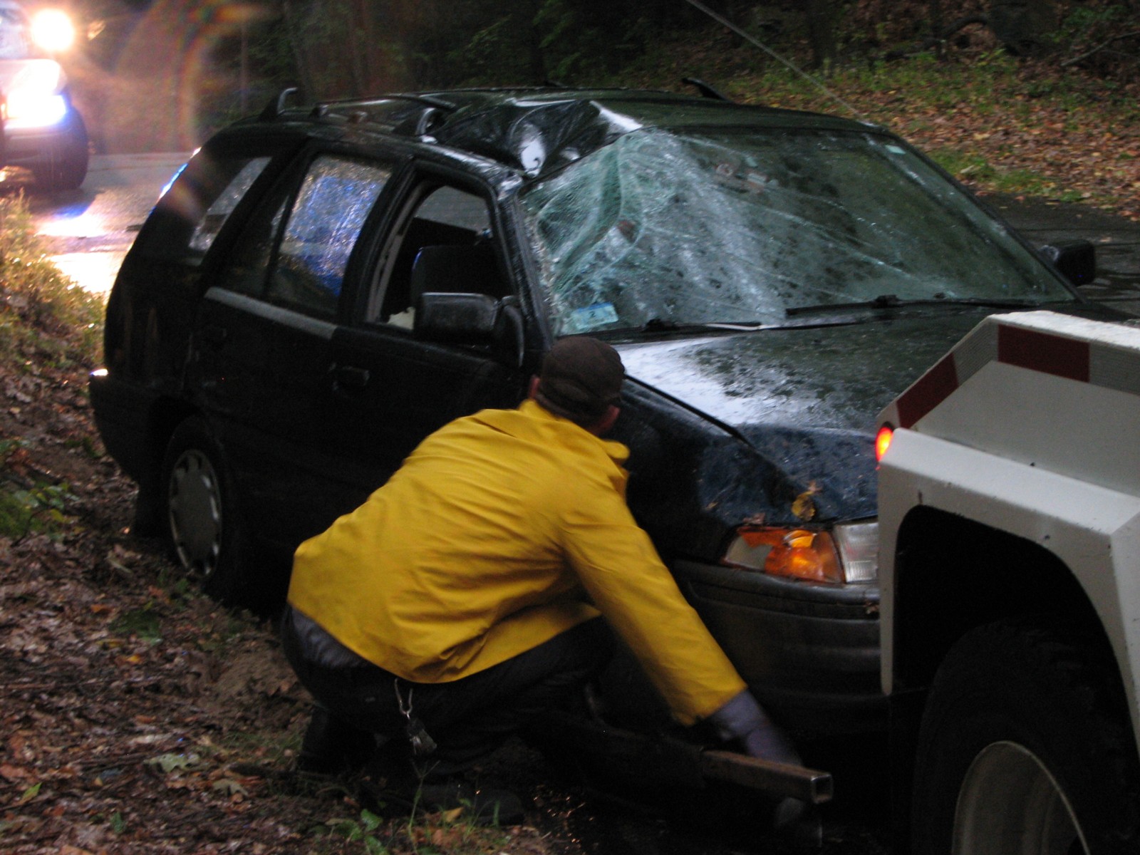 Just around 5:30 PM, when it started to rain, the driver of this car driving down Leadmine Road lost control and flipped three times. The occupants of the car refused Medical Treatment and were lucky to be able to walk away.