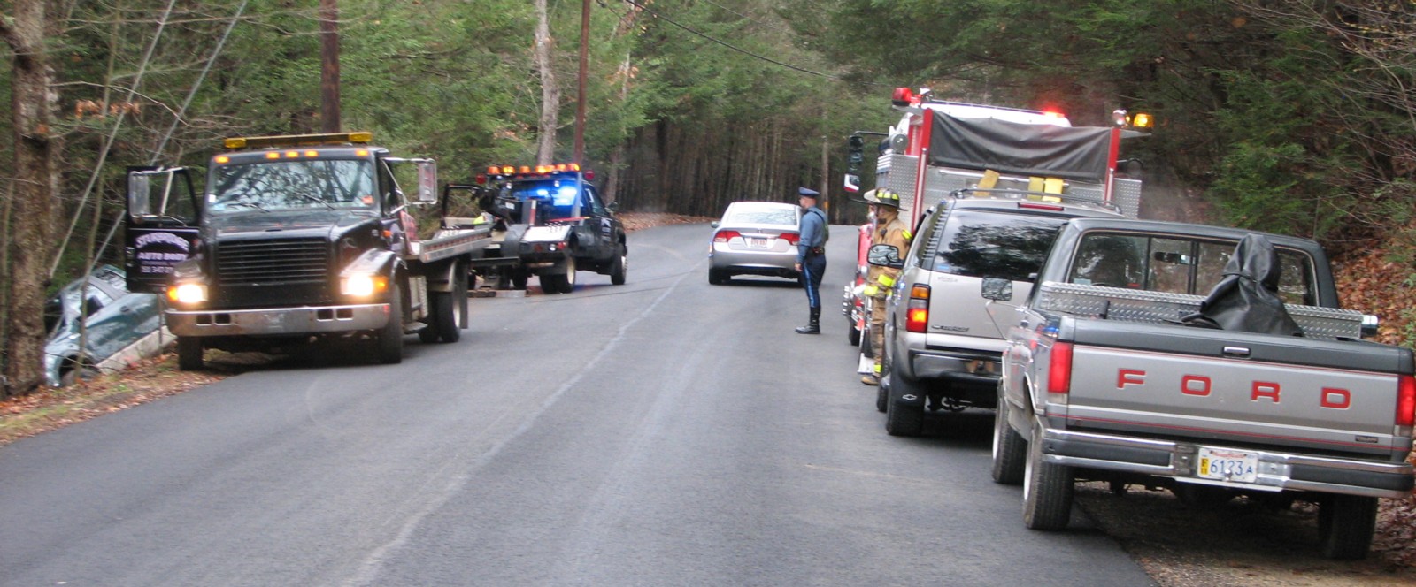 Pictured on the left, the Brimfield Ambulance at 14:44 hours rushing towards Exit 74 of I84 to proceed eastwards on I84 towards Harrington Memorial Hospital in Southbridge where the Ambulance arrived at 14:59 hours.