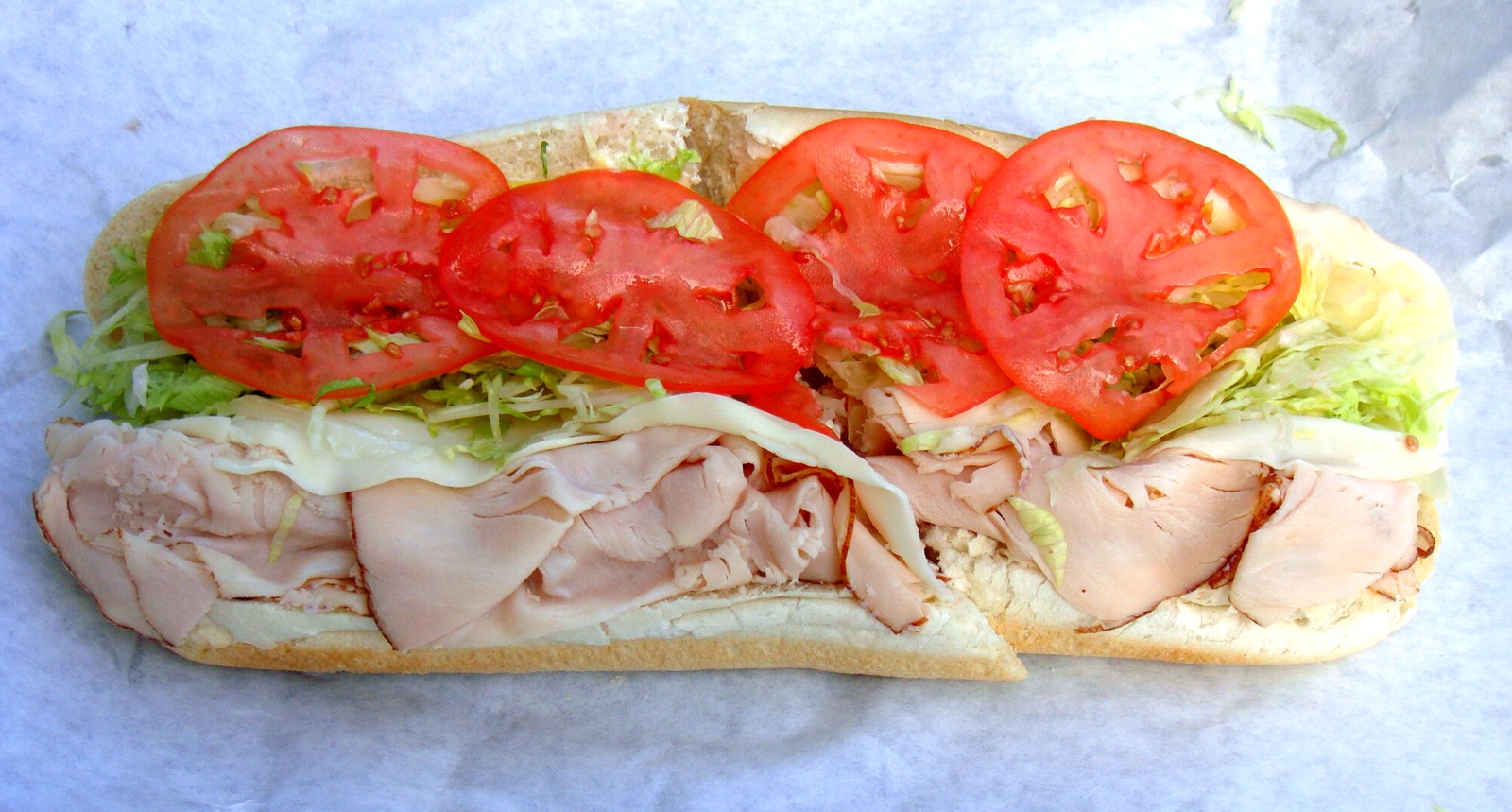 The-Best-Turkey-Grinder-from-Holland-Market. On the bottom to the right is a Turkey grinder with mayonnaise, onions, lettuce, tomato and provolone cheese.
