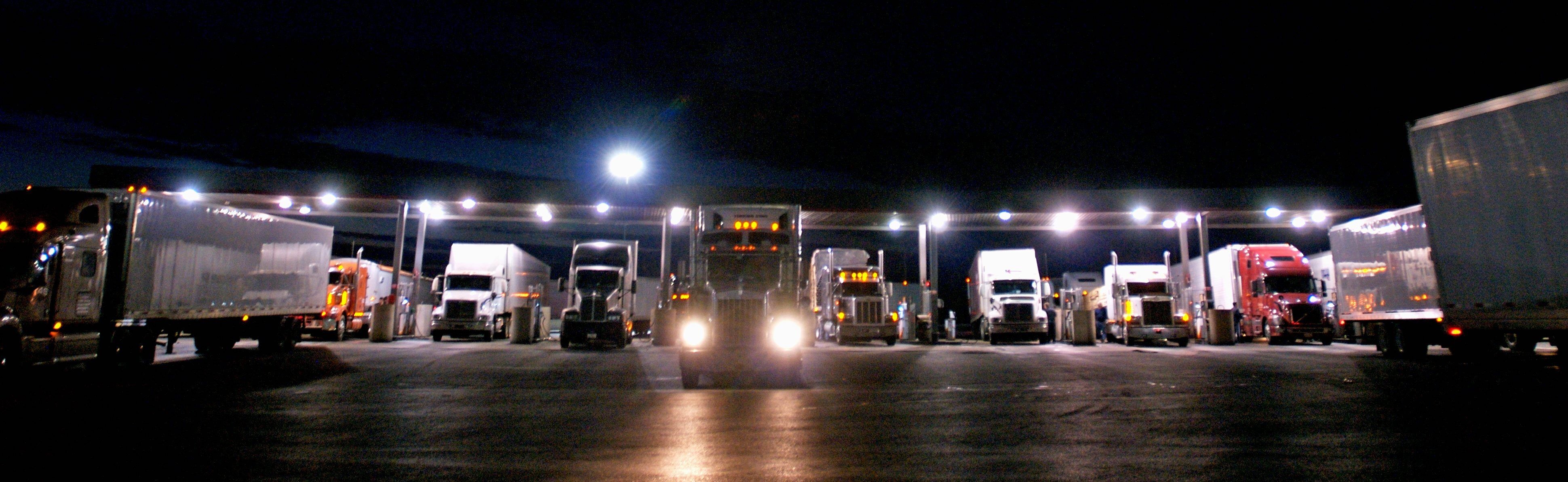 Truck stops are basically huge parking lots with fuel pumping stations, huge underground storage tanks and buildings with restaurants, arcades,