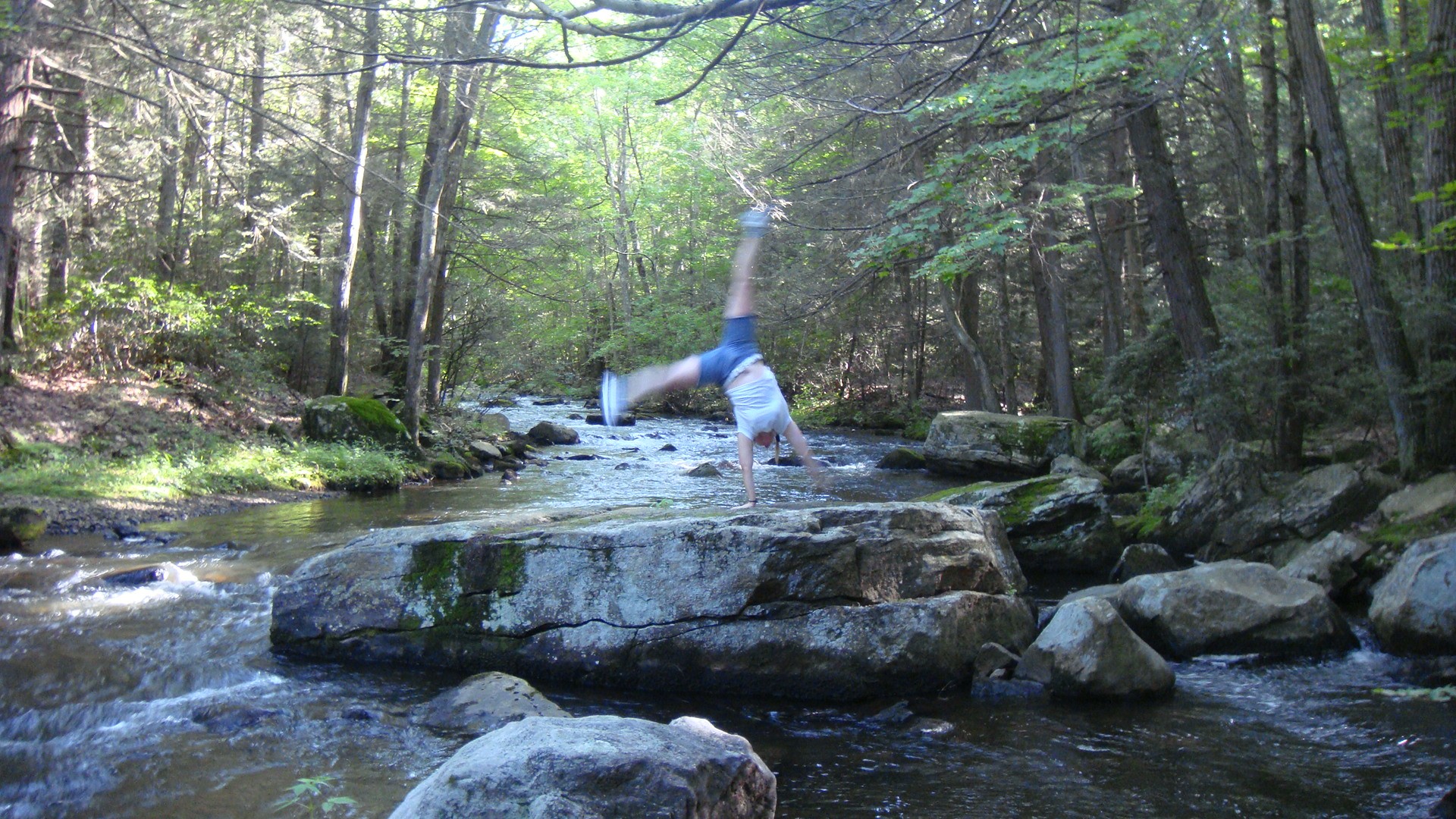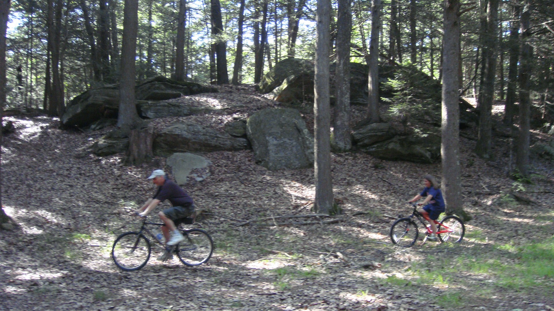 The trail in the back of the reservation is not well defined. We went down the steep bank towards the Quinebaug river. The decline is somewhat challenging and helmets are suggested, especially for kids as the trail is rocky.