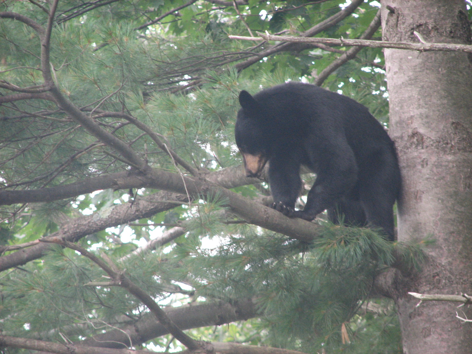Eventually the black bear climbed the tall tree where the pictures shown here were taken.