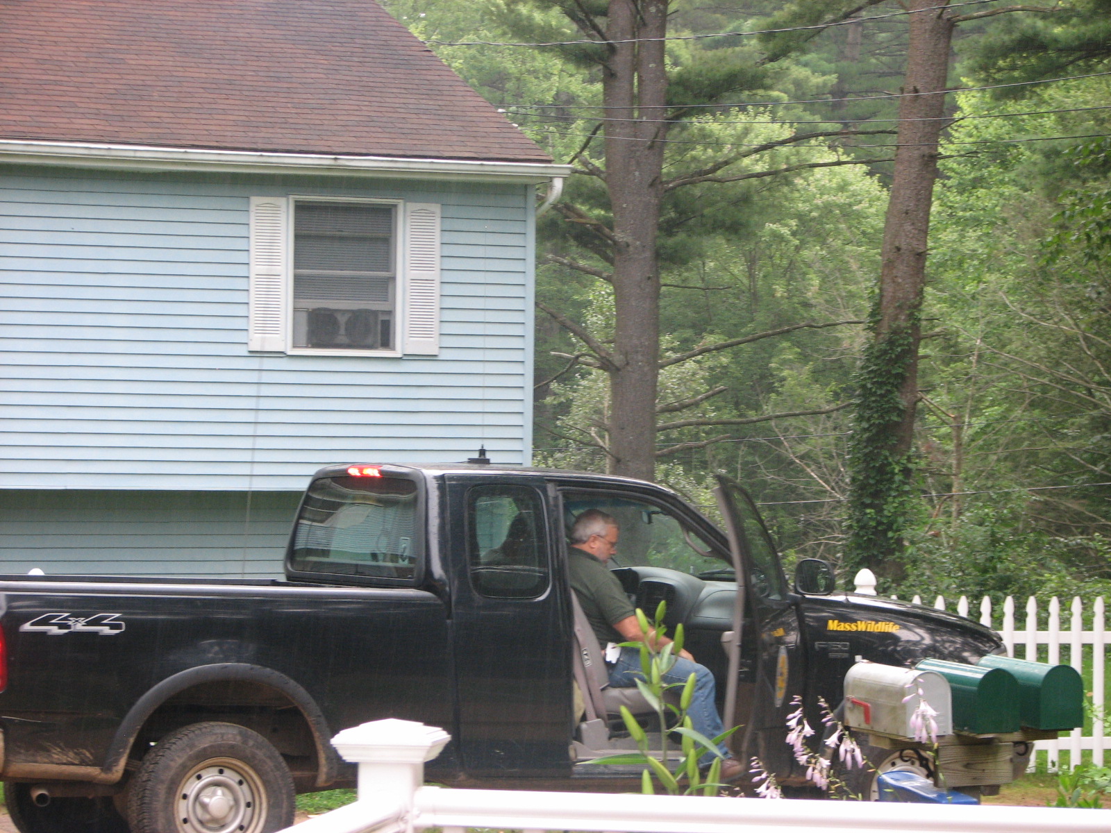At 9:47 a.m., two officials from the Massachusetts Division of Wildlife & Fisheries arrived to assess the situation.