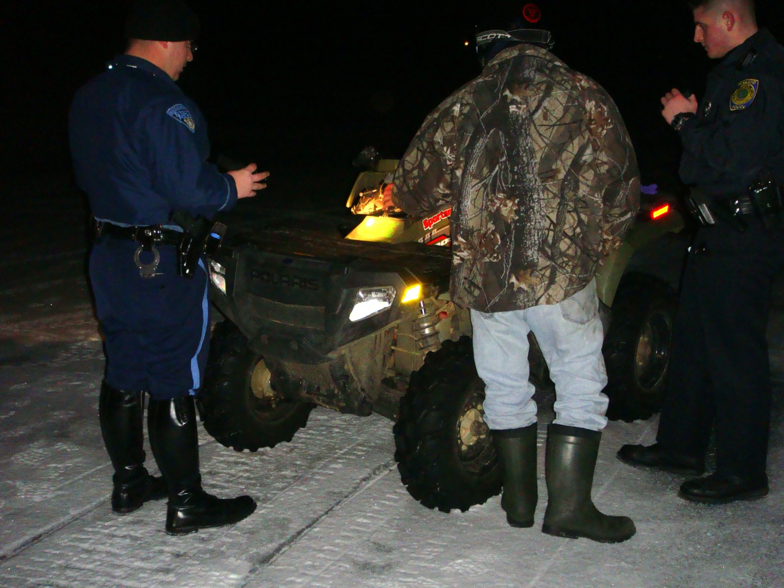 Chucky and officer Alex Berry from the HPD and an officer of the State Police are inspecting the damaged quad:
