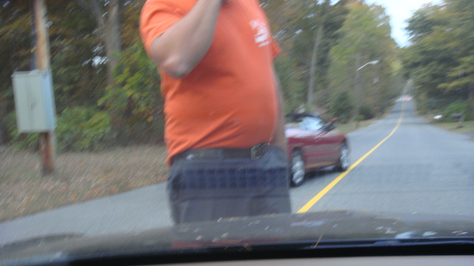 The picture above shows Brian standing in front of my car after I took a picture for the piece Office or residence? While his friend/neighbor was standing behind my car so I could not move, Brian Johnson called the police (state and local).