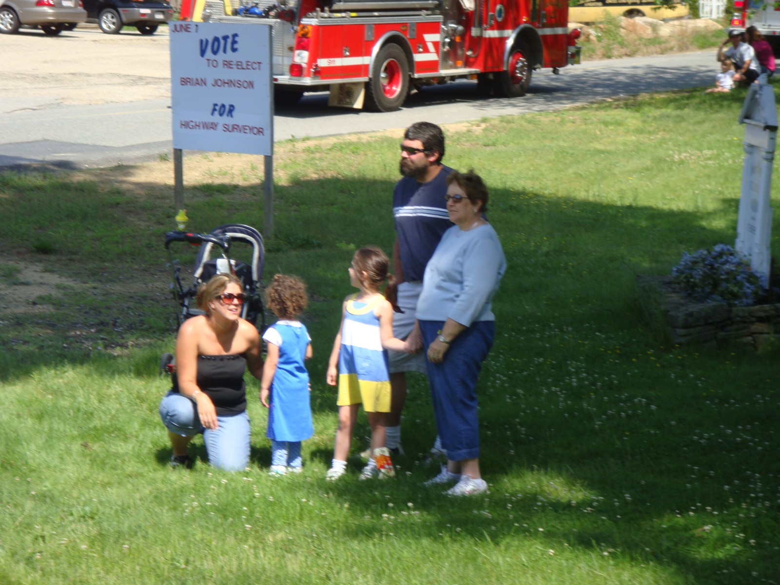 Brian Johnson posed with family in front of his oversized campaign sign for the parade on Memorial Day. I have not seen him at the flag rising or at the Memorial. He was also not at the cemetery or at the Senior Center.
