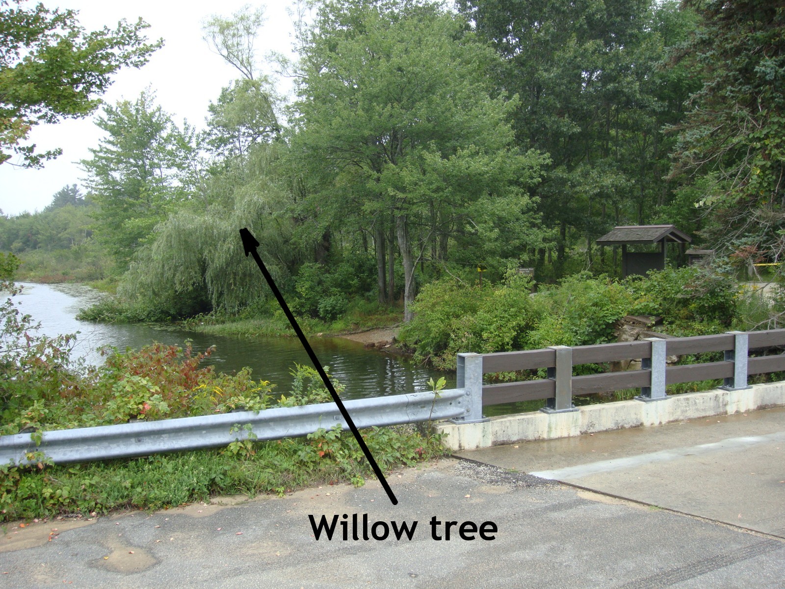 The picture below shows the Willow tree and the bridge to illustrate the location of the removed structure that was “The Anchor” Restaurant and Inn.