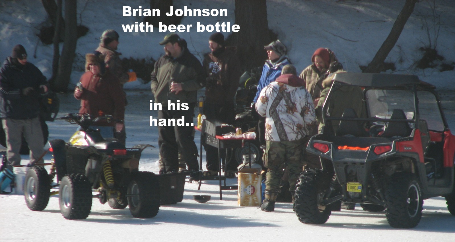 I walked back to my house the shortest distance where I always walk (when the ice is safe) which leads over the water. Brian Johnson and his mob of six positioned themselves right in the midst of the path on the ice to my house. As I walked towards them, Brian Johnson said something I couldn't understand. I asked, “are you talking to me? ”He then said, “sn't there somebody else in the house?”