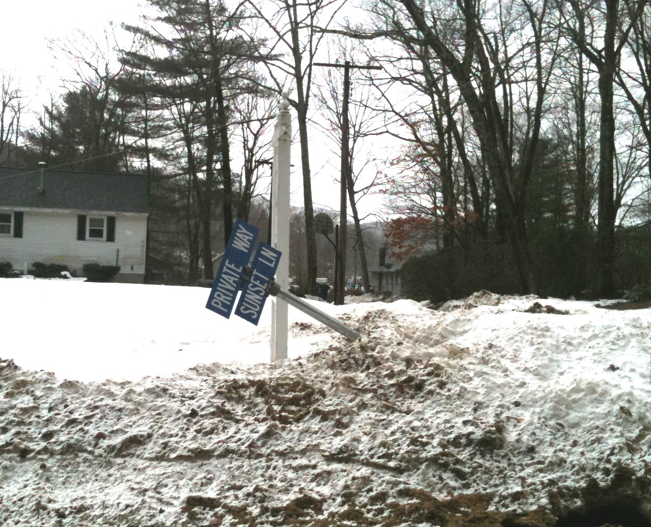 One of many bent street signs.